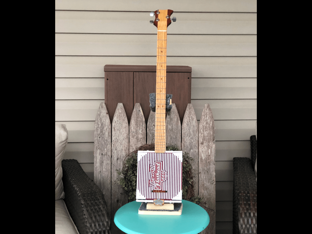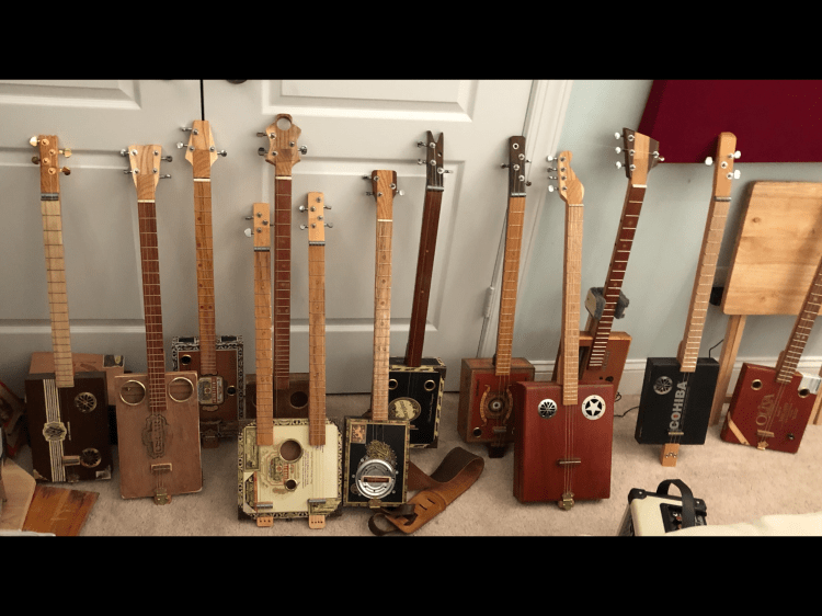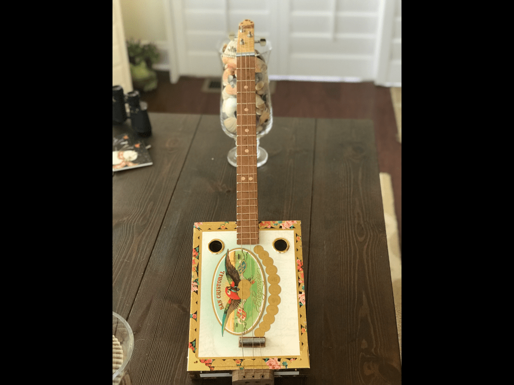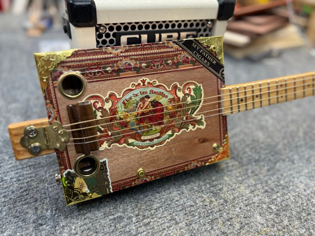 Purple smoking skull, electric fourth string, license plate guitar with adjustable bridge Piezo pick up Dias DE Gloria four string cigar box guitar, acoustic electric with Piezo pickup Henry clay Warhawk, fourth string, solid wood Cigar box Guitar burnt wood finish Drew estate fourth string, electric 20th anniversary cigar box guitar with Humbucker pickupMy father’s cigars for string cigar box guitar, with Piezo pick up acoustic electricDog bowl, resonator, Acoustic electric guitar with Piezo pickup Theme & custom cigar box guitars Diamond plate Electric cigar box guitar with bottle opener and beer caps for volume and tone. Acoustic electric Camacho Camachocigarbox guitarSolid three string electric Cigarbox bass guitarBrick House acoustic electric cigarbox guitar withPiezo pickupDouble neck acoustic electric three and four string CigarboxguitarLicense plate guitar Piezo pick up ElectricWhite payback acoustic electric cigarbox guitarKeepsake box acoustic electric with piezo pickupFlathead 660 acoustic electric piezo pick up cigarbox guitarCrab can Croaker resonator acoustic electric cigarbox guitar definitely a unique sound!Double neck acoustic electric four and three string necksSan Cristebal exotic bird custom acoustic electric cigarbox guitar with walnut fretboardMi AmoreAcoustic electric cigarbox guitar with two-tone Wood headstockThe Down homeAntique Cigarbox acoustic guitar Quad sound hole acoustic Padron cigarbox guitar with gold style finish keys , corners and Sound Holes Beautiful cigarbox guitar with walnut fretboard