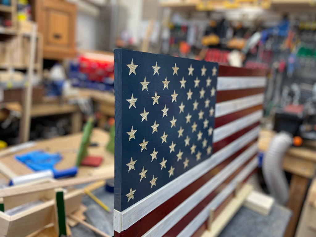 WOODEN FLAGS 1776 Hand carved flag 37”x 19.5” 50 States hand carved union flag 1776 Carved union small flag10” x 18.5” 50 State Carved union small flag 10” x 18.5 “